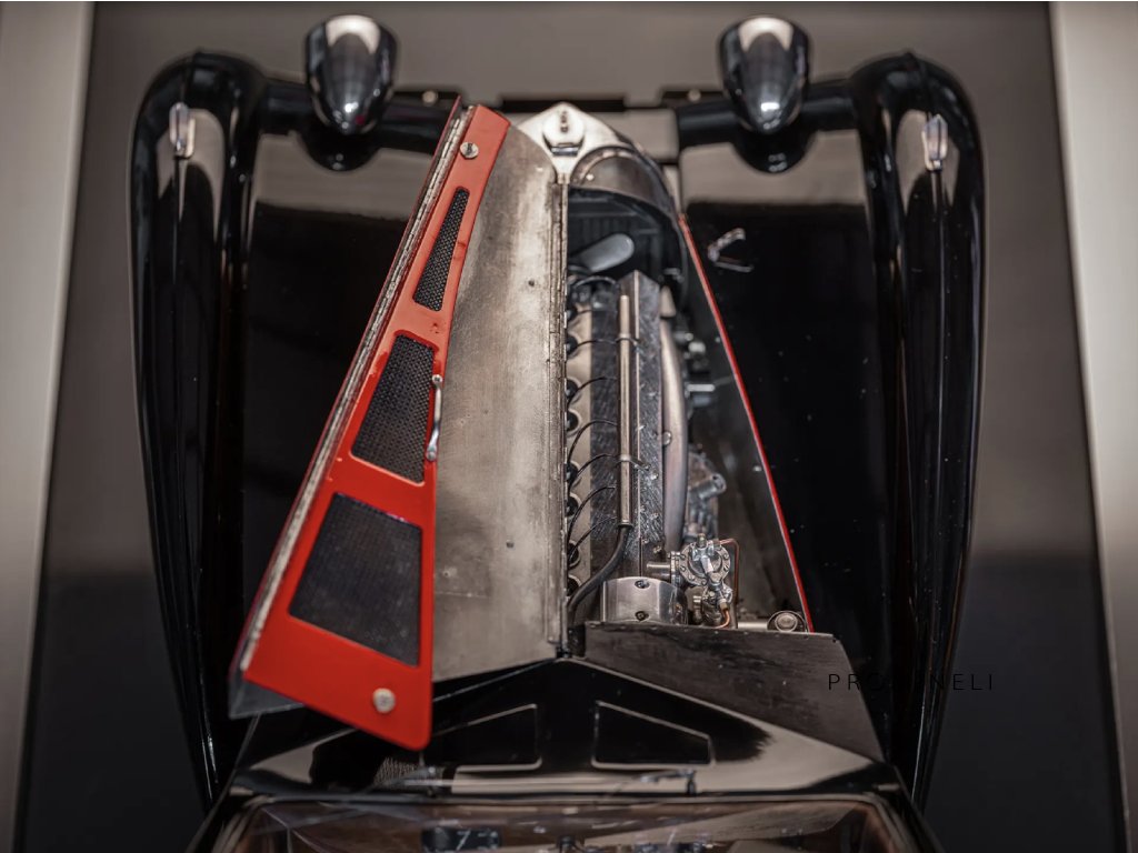 Původně měl výkon 180 koní. Poté, co bylo toto elegantní kupé během války odstaveno a vystřídalo tři majitele, prošlo v roce 1971 kompletní rekonstrukcí po menším požáru, který poškodil palubní desku.