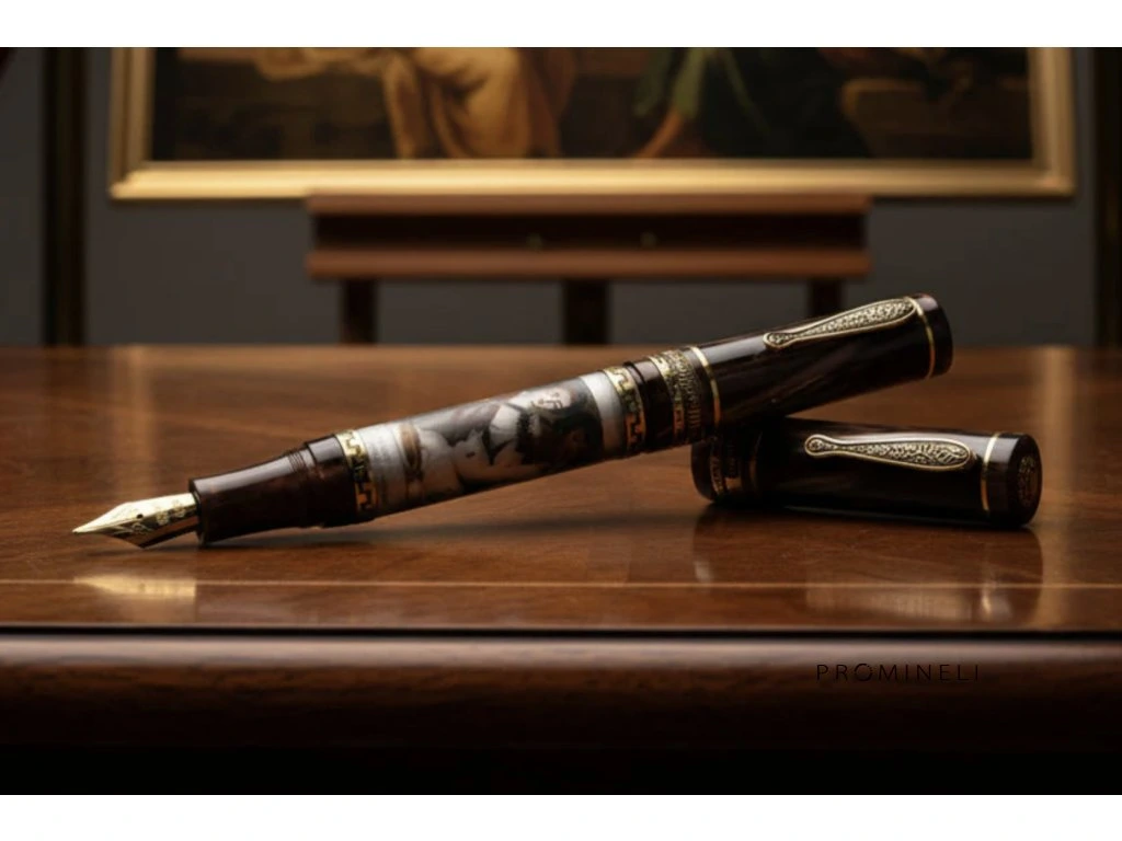 Každé pero je vyrobeno z jemné italské pryskyřice a má miniaturu obrazu na křemenném těle, což z něj dělá skutečné umělecké dílo.